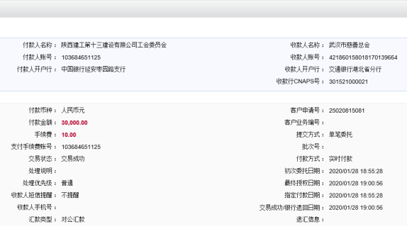 面對新型冠狀病毒肺炎疫情防控的嚴峻形勢,公司第一時間發出了“愛心捐款倡議書”,立即得到了全體干部職工的積極響應。十三建公司全體黨員以及廣大職工發揮模范帶頭作用,集十三建人力量,匯廣大職工愛心,在短短一天時間內,自發捐款合計三萬元,最終通過公司統一轉往武漢市慈善總會,助力打贏疫情防控阻擊戰,用實際行動支援湖北,向偉大祖國表白!