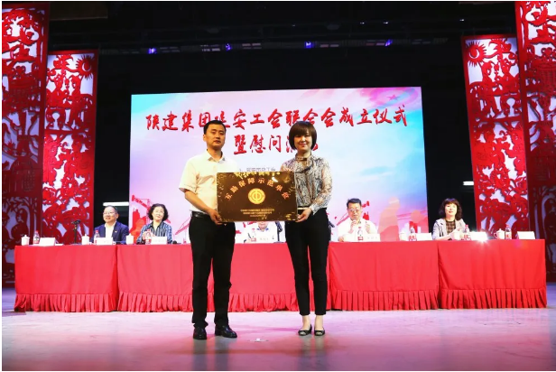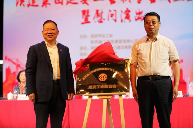 延安市總工會常務副主席宋殿勇同志,陜建十三建公司黨委書記、董事長卜國平同志共同為陜建集團延安工會聯合會揭牌。