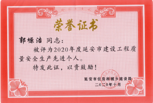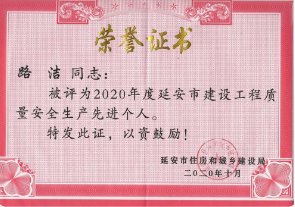 路潔、郭塬浩榮獲“延安市建設工程質量安全生產先進個人”榮譽稱號。