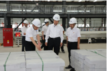 張義光董事長先后察看了新型建材產業基地產品展廳、裝配式建筑產品生產線和裝配式建筑產品堆放區,詳細了解了陜建延安新型建材產業基地發展情況。