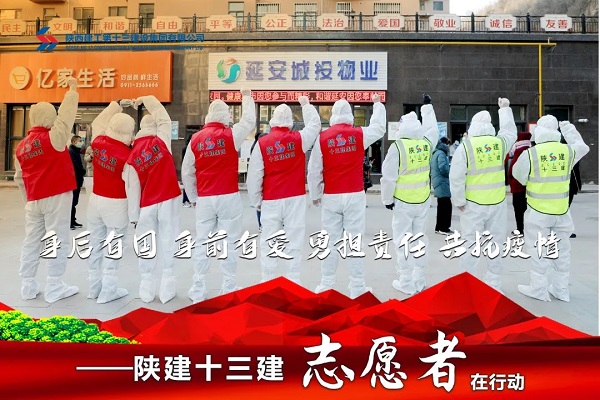 陜建十三建集團黨員先鋒隊和青年突擊隊組成的志愿者