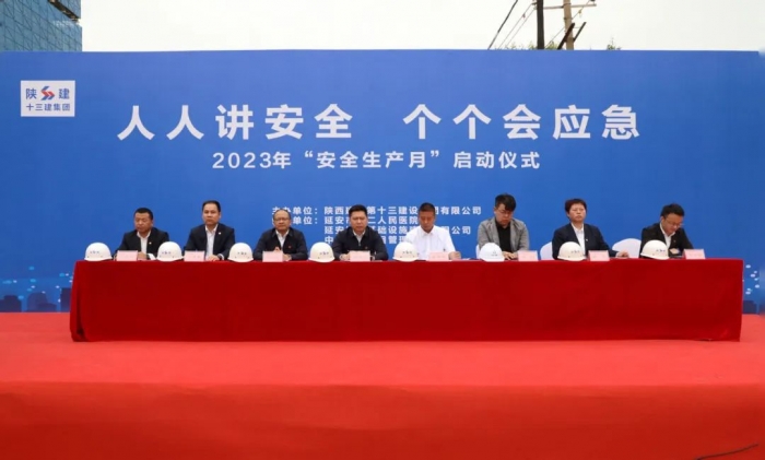 6月2日,陜建十三建集團在第二人民醫院改擴建項目項目部舉行2023年“生產安全月”啟動儀式。延安市第二人民醫院院長武劍峰、延安城投基礎設施建設有限公司副總經理習智、集團總工程師王弘起、副總經理楊永宏等出席啟動儀式。
