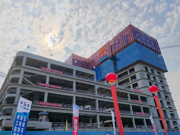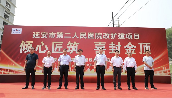 傾心匠筑·喜封金頂。7月20日,由陜建十三建集團承建的延安市第二人民醫院改擴建項目順利封頂。