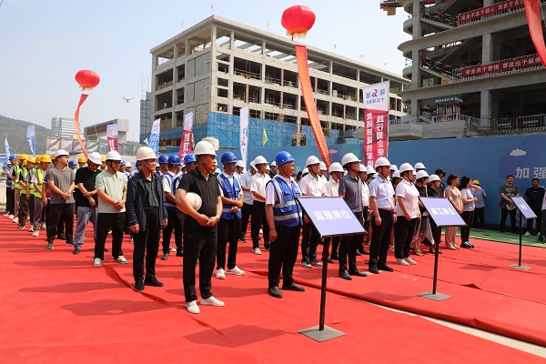 建設單位、監理單位相關人員,集團相關部門及項目全體人員參加了封頂儀式。