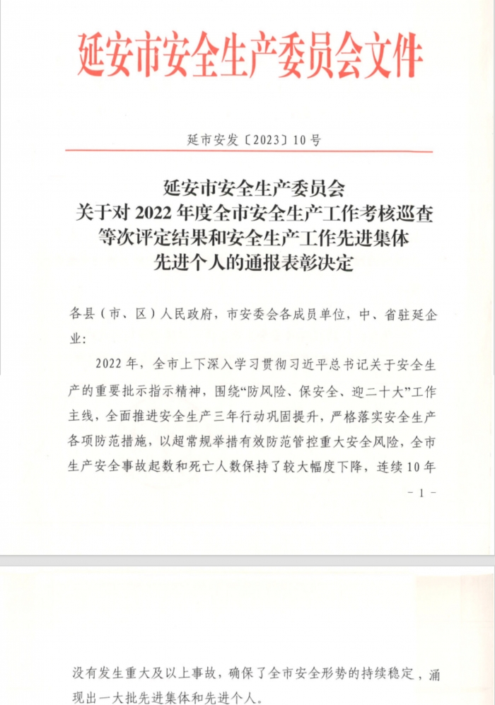 近日,延安市安全生產委員會表彰了2022年全市安全生產工作先進集體和先進個人,陜建十三建集團獲評延安市安全生產先進集體,這是集團連續四年榮獲全市安全生產先進集體表彰。