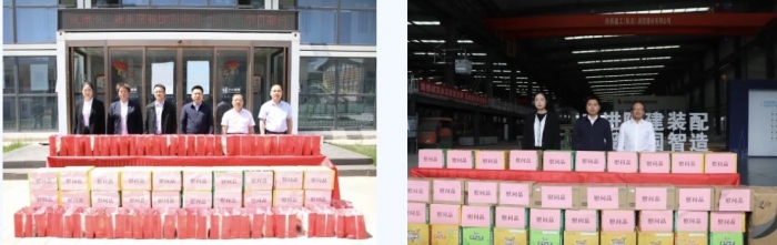 在五一國際勞動節到來之際,受集團黨委委托,集團黨委副書記、總經理楊永宏,總工程師王弘起,總會計師劉小衛,紀委書記、工會主席李靜先后到信天游文創餐飲街項目、陜建(延安)新型建材公司慰問一線員工及工友,并將慰問品送到他們手中。