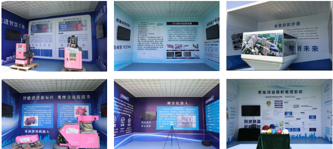 該項目緊扣智能化、數(shù)字化主題,以“設(shè)計數(shù)字化、施工智能化、管理信息化”為主線,分為“數(shù)字平臺區(qū)、智能機器人區(qū)、智能設(shè)備區(qū)、四新技術(shù)應(yīng)用區(qū)、展板區(qū)”五大展區(qū),分別呈現(xiàn)了質(zhì)量巡檢系統(tǒng)、BIM技術(shù)過程管理、基坑監(jiān)測系統(tǒng)、地面整平機器人、地庫抹光機器人、螺桿洞封堵機器人、混凝土內(nèi)墻面打磨機器人、建筑清掃機器人、地坪研磨機器人、ALC墻板安裝機器人等,展示了一系列施工相關(guān)的智能建造技術(shù)和智能設(shè)備,讓觀摩人員贊嘆不已、紛紛點贊。