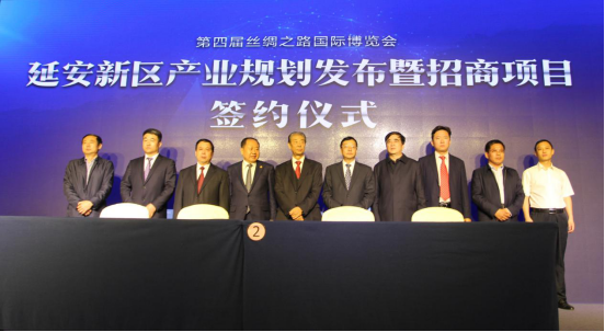5月13日,西安舉辦第四屆絲綢之路國際博覽會“延安新區(qū)產(chǎn)業(yè)規(guī)劃發(fā)布暨招商項目簽約儀式”。陜西省政協(xié)原副主席、延安精神研究會會長梁鳳民見證簽約。延安市委副書記、市長薛占海致辭,延安市委副書記吳鐵主持。